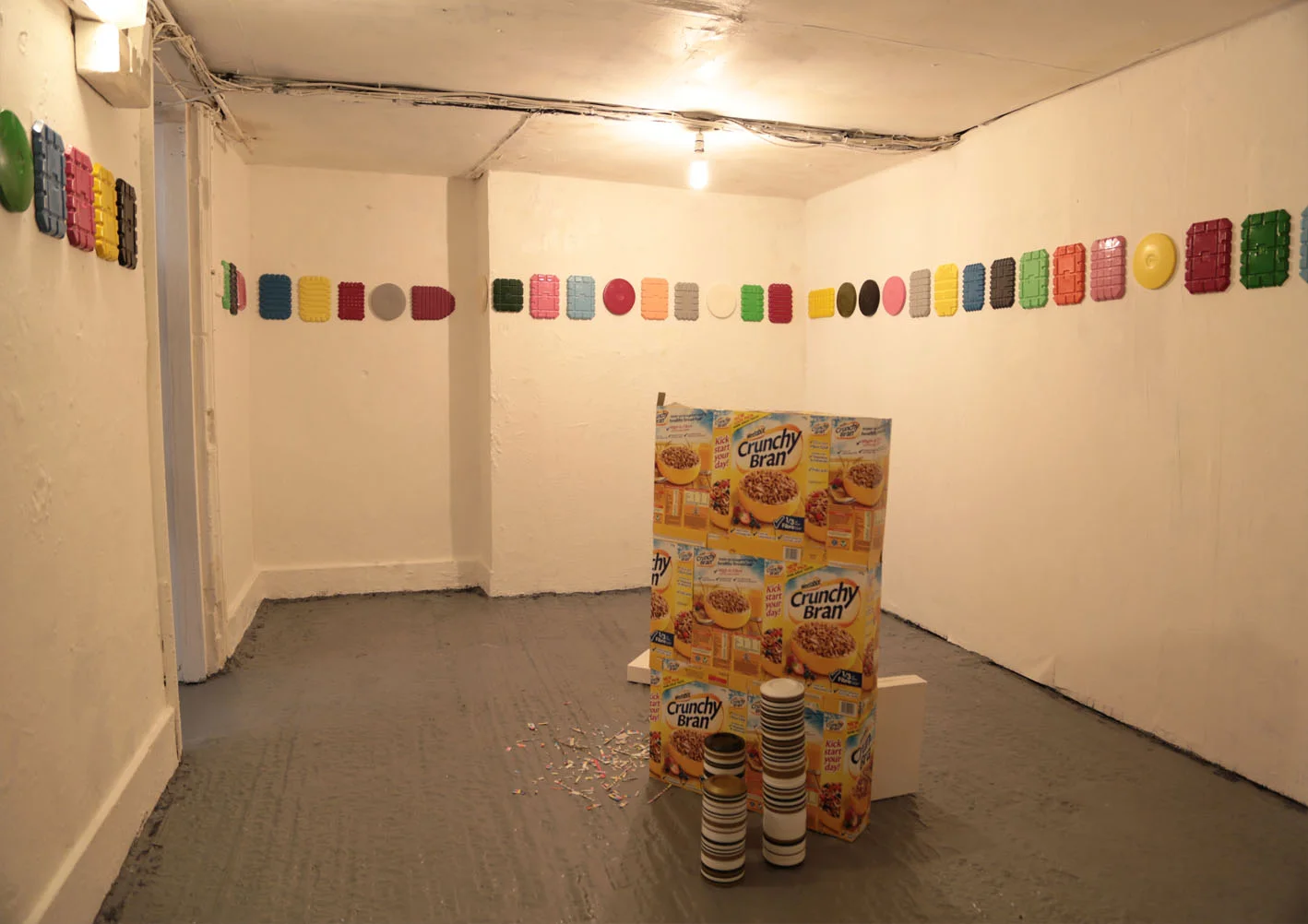 In 'Border', casts were taken from food containers and arranged arbitrarily to form a picture border for the room.