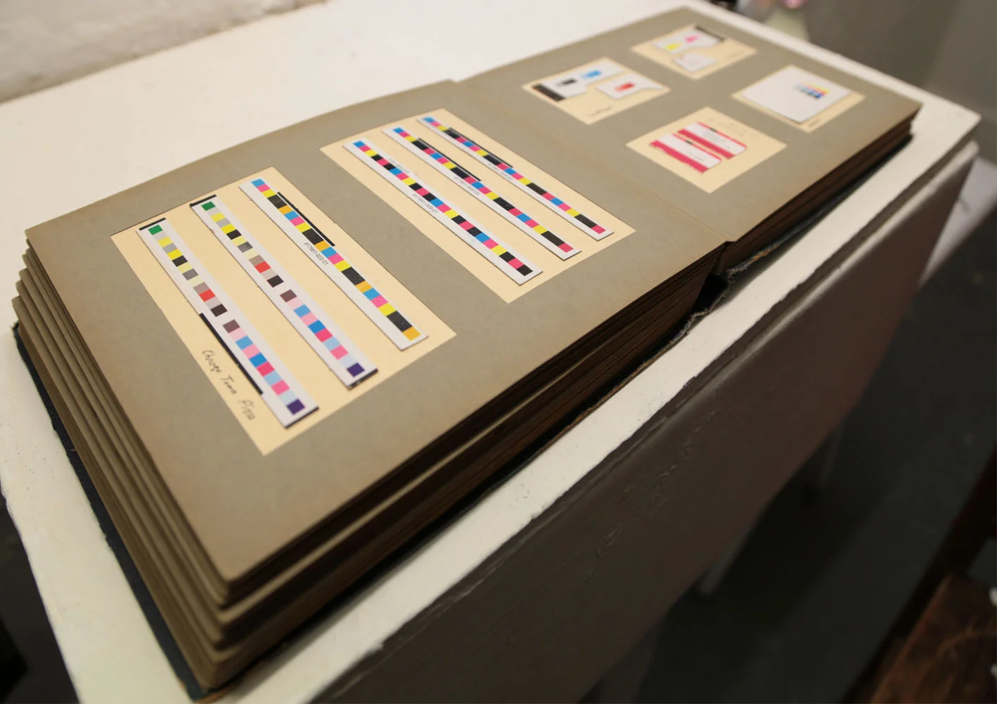 A year previous to the exhibition I had started collecting the CMYK print register tabs that you find concealed on all sorts of packaging. Two minor but significant events got me started. The first was a second hand record I had bought at a boot fair. The case and sleeve was in a fairly shoddy condition and had come apart to reveal the CMYK and other colour shapes along the inside glued tab. The second event was the discovery of a delightful print registration pattern left on the previously hidden tab at the bottom corner of a cereal box that had been earmarked for recycling. I have always had a tendency to inspect and read the box whilst eating my cereal and had noticed these 'peripherals' before. They have always delighted me visually and like anything, when you start collecting and observing it regularly, you start to enjoy the small differences that you can spot.
